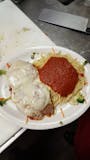 Topped with ground beef, fresh onions, diced tomatoes, lettuce, cheddar, and mozzarella cheese